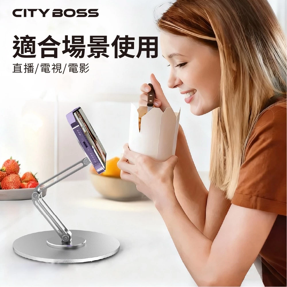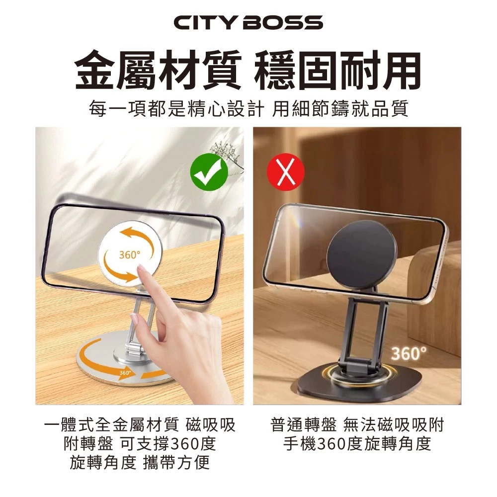 360°上下雙旋轉磁吸手機架,突破一般只有底座能轉的限制,
