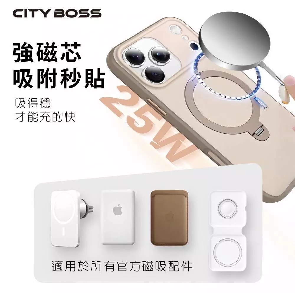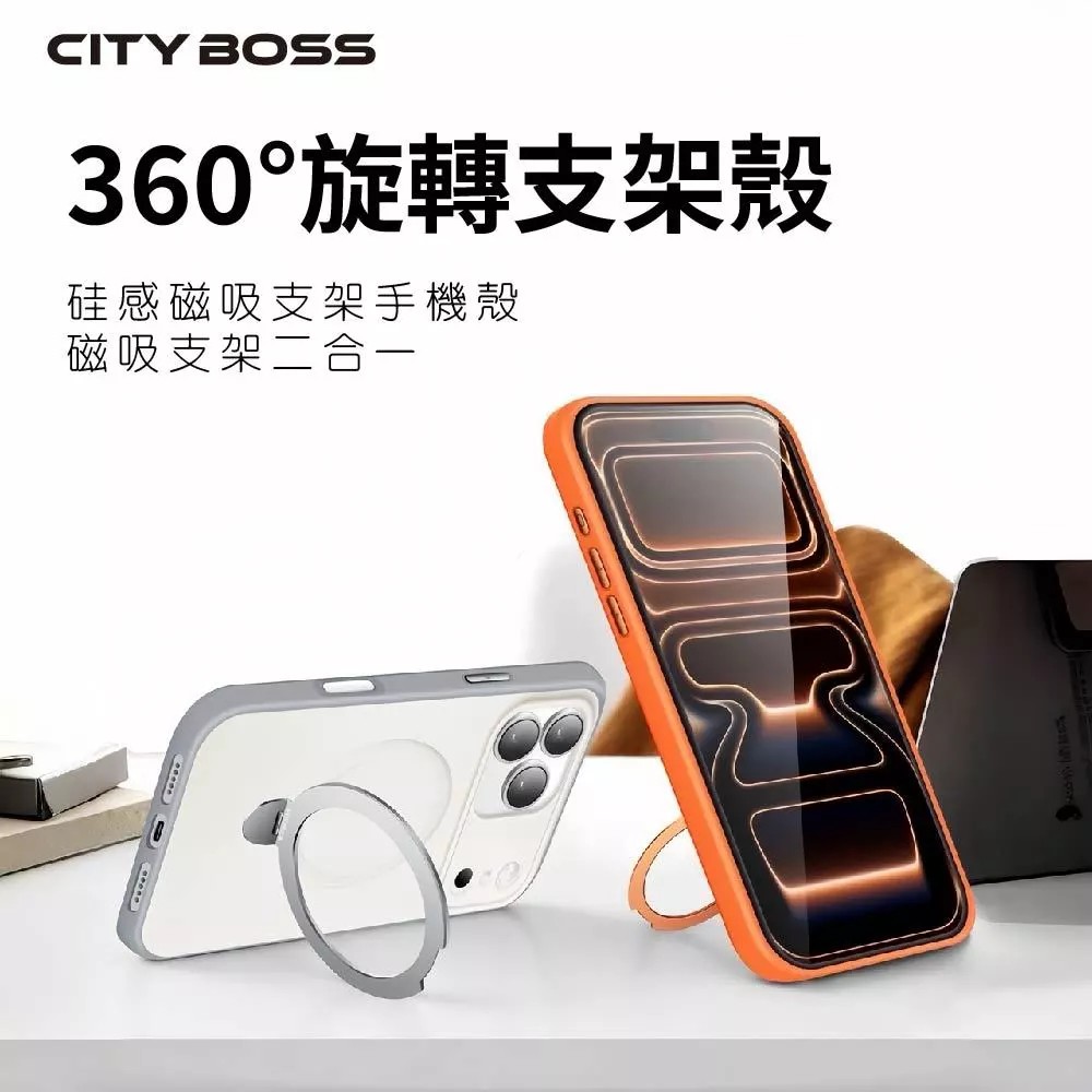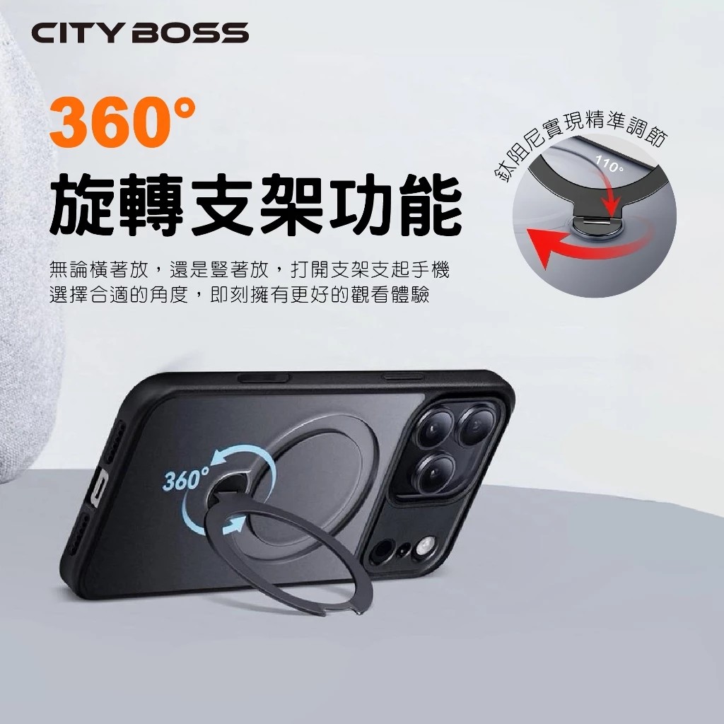 iPhone磁吸手機殼|軍規防摔旋控360°隱形支架,TPU+PC材質,四角氣囊減震,鏡頭加高全面保護。