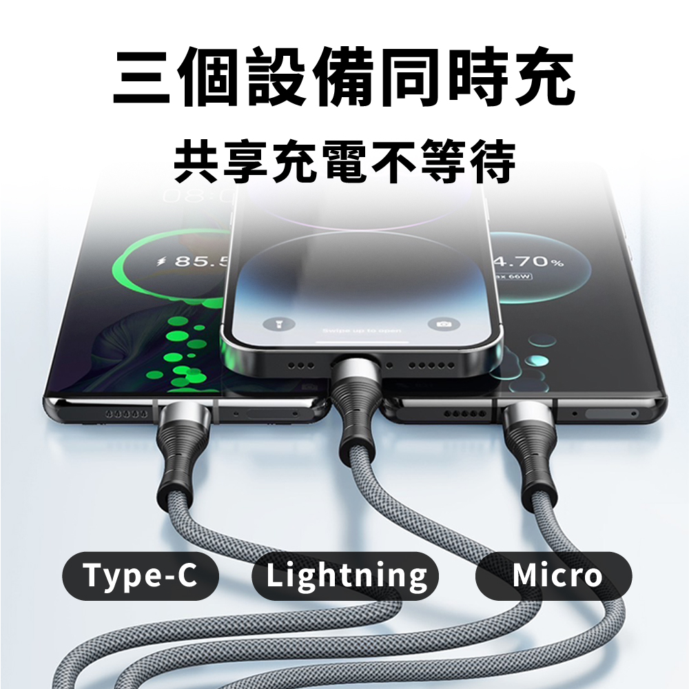 🔋三合一接頭,共享充電不等待 🔌加長加固接頭,抗彎折超耐用