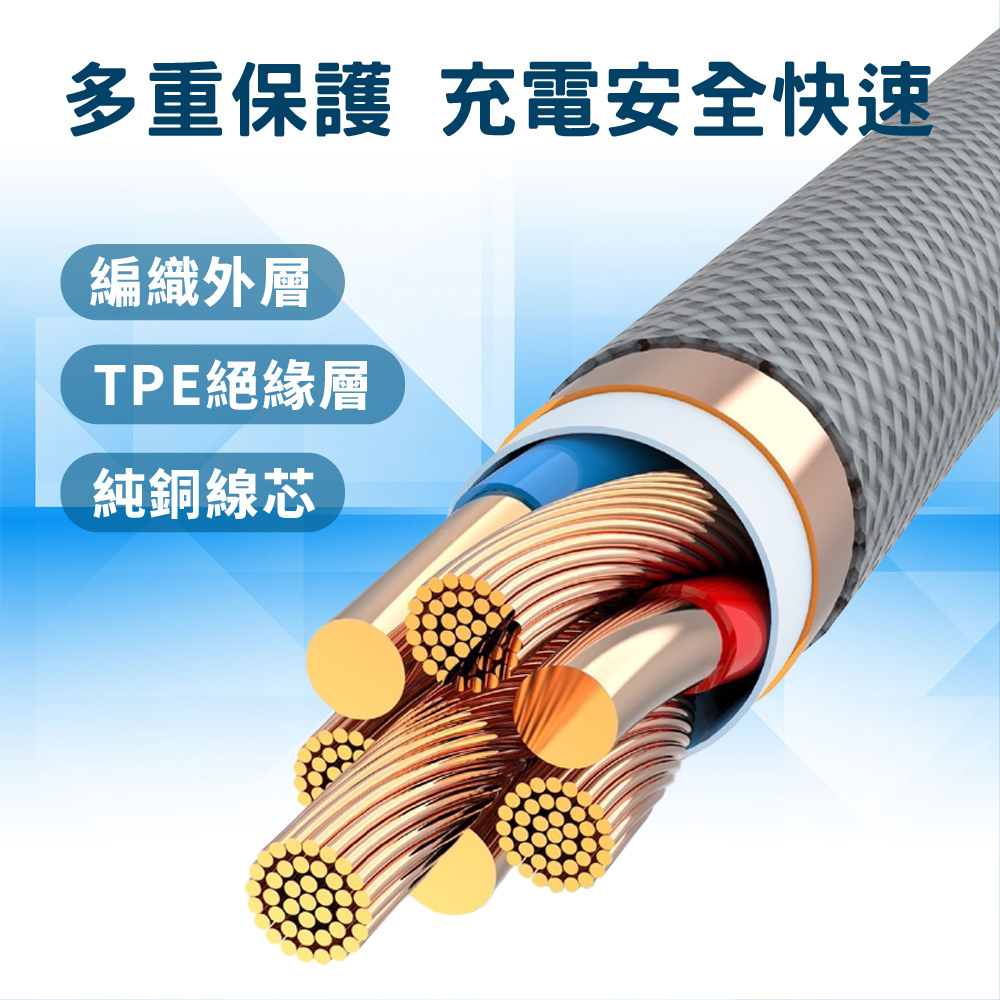 🛡️純銅線芯多重保護,快充更安全 ⛓️PVC高密編織線,耐磨性佳不易打結
