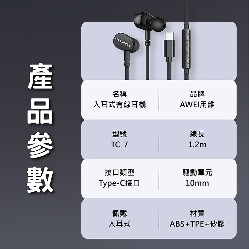 ☑ 產 品:Type-C入耳式有線耳機
