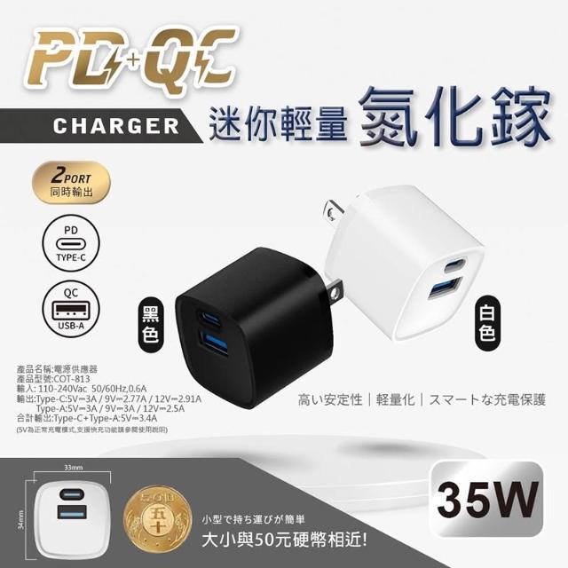 35W雙孔PD+QC充電頭 結合了快速充電和多功能性