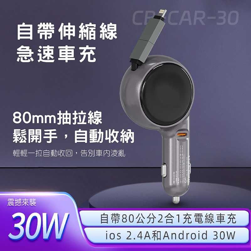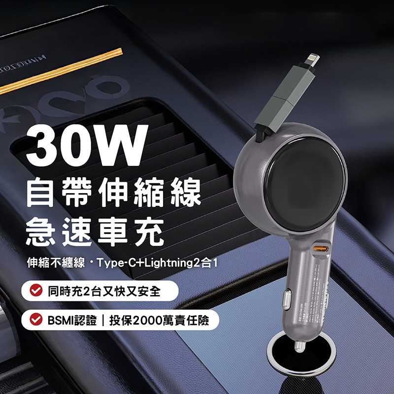車用 30W 自帶伸縮線車充 🚗