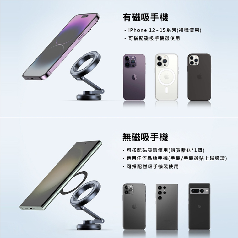▴ 不挑手機品牌,無磁吸手機,搭配磁吸環也可使用