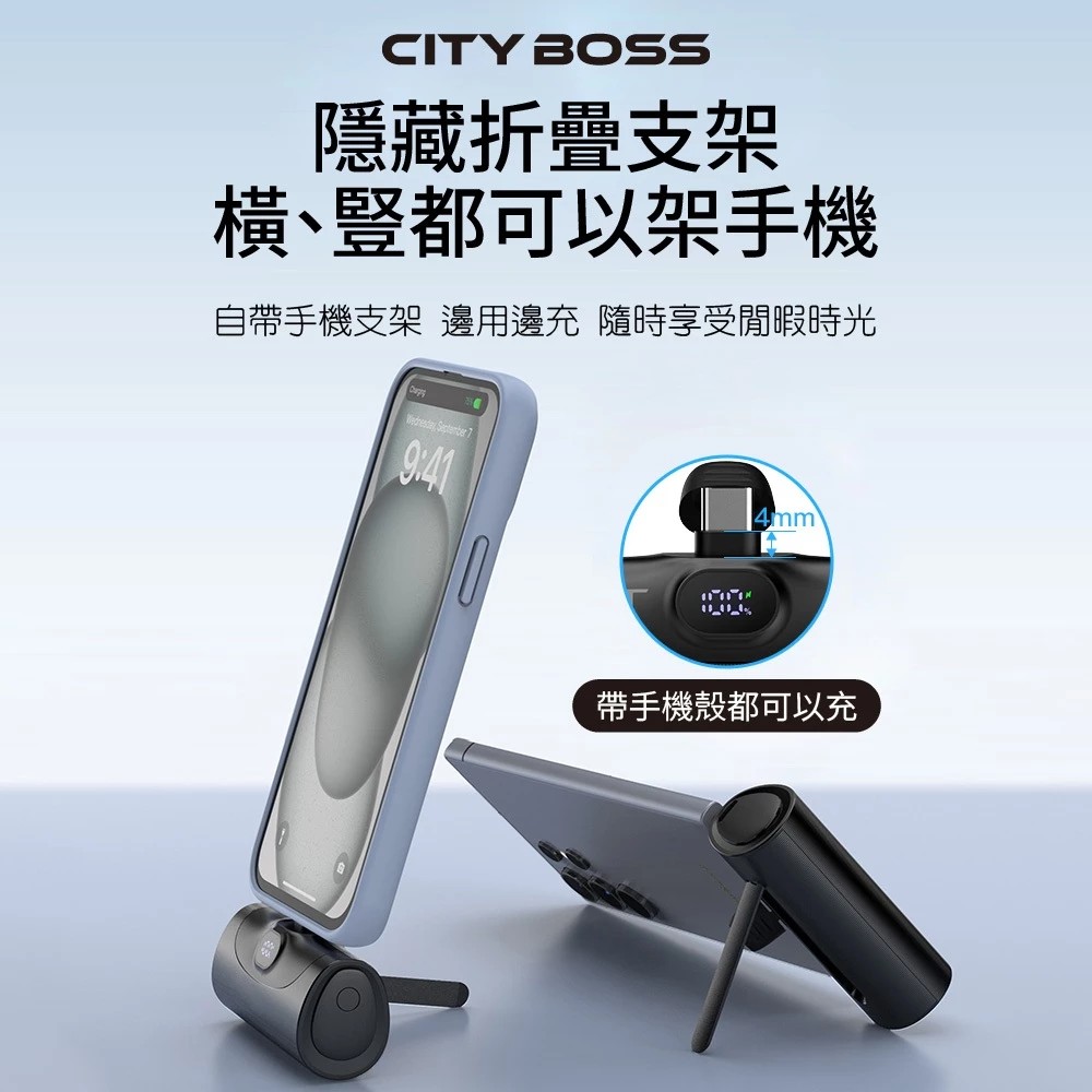 內建數顯螢幕,清楚掌握剩餘電量;金屬質感外殼+隱形立架功能,追劇、辦公都方便;