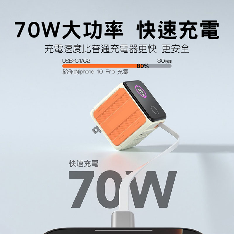 【商品特色】 功率等級:最高70W PD快充(PD3.0/QC4.0/PPS/SCP協議)