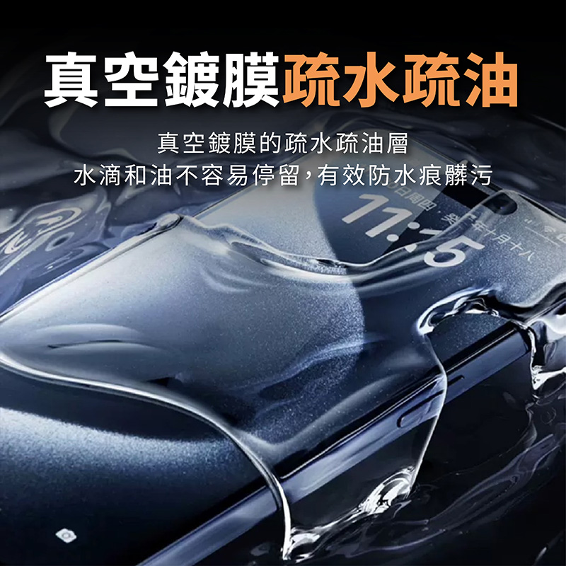 ⚫️《5D曲面技術 真空鍍膜疏水疏油 水滴角116度💧》 真空鍍膜的疏水疏油層,使水滴和油滴在表面上迅速滑落不容易停留,有效防止螢幕上形成水痕。