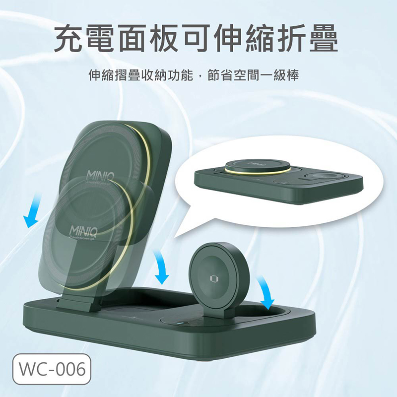 型號:WC-006 品名:3in1 折疊平板磁吸無線充電座